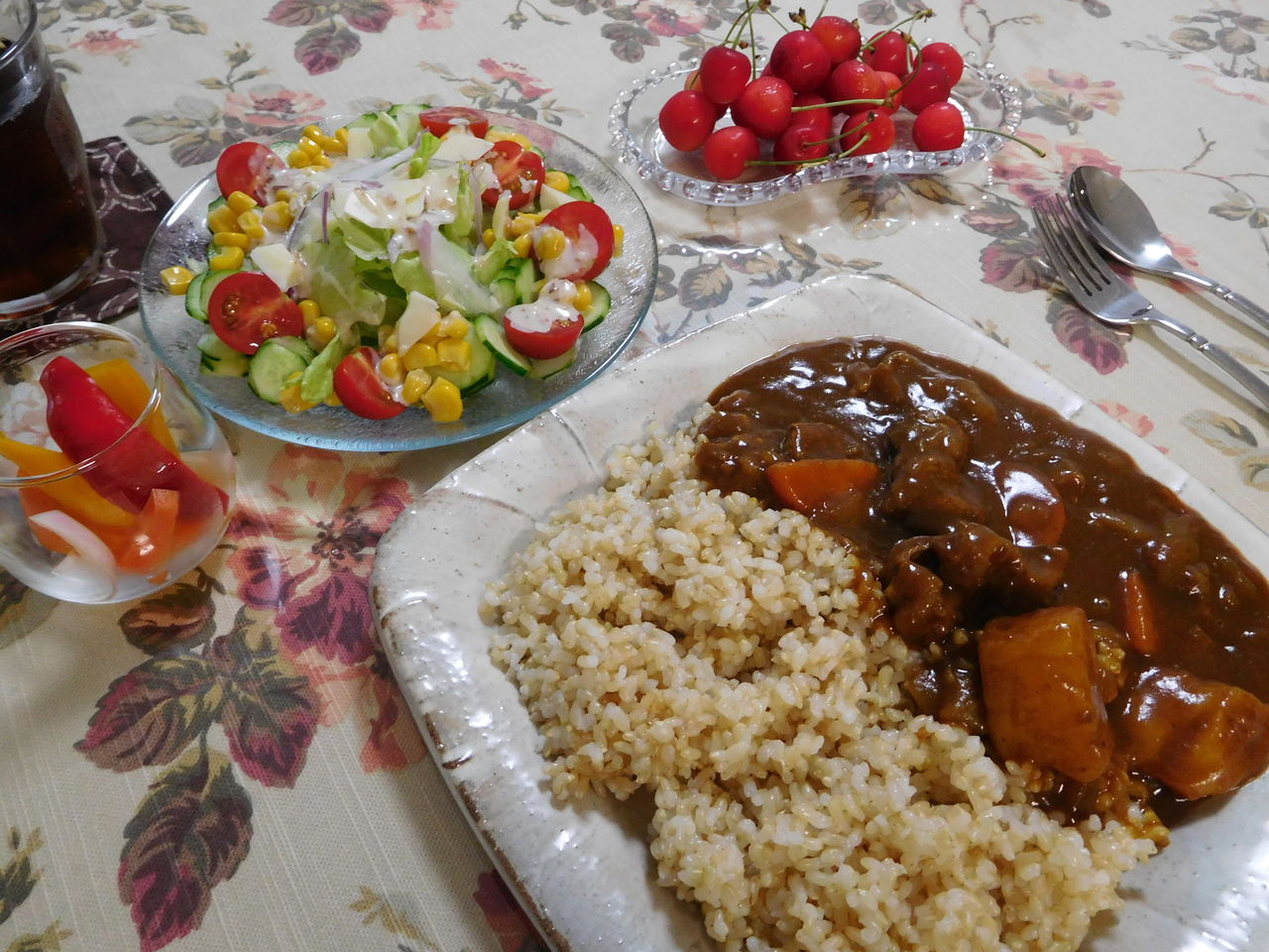 〇カレーライス〇ピクルス〇サラダ〇さくらんぼ