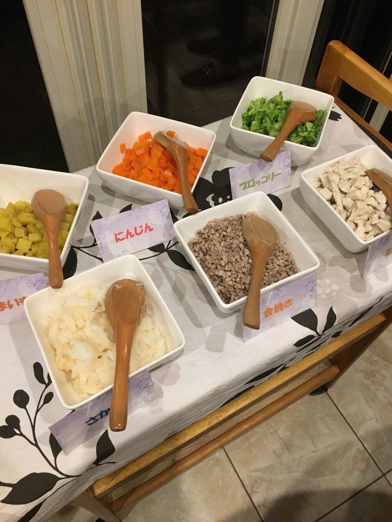 まずはわんこの夕食です。samにはわんわんビュッフェをお願いしていました。まだパピーなので、自宅から持っていったドッグフードのトッピングとしてビュッフェを楽しみました。朝食用に取り置きもしてくださいます。