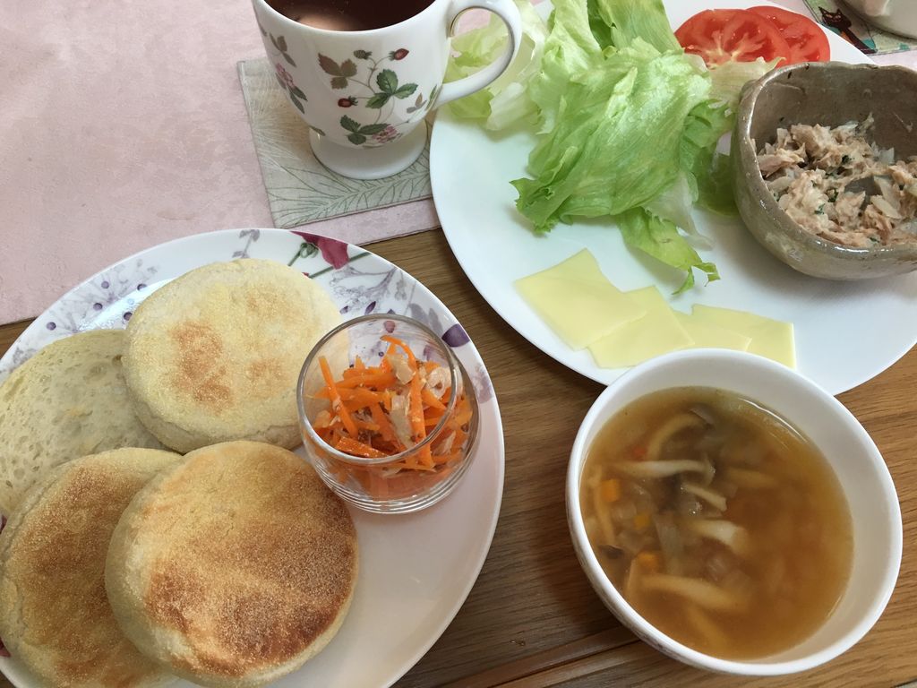 イングリッシュマフィンと野菜スープ